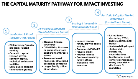 Figure 1. The Capital Maturity Pathway For Impact Investing (Permission to share and reuse with clear attribution to “SDG Impact Partners”)